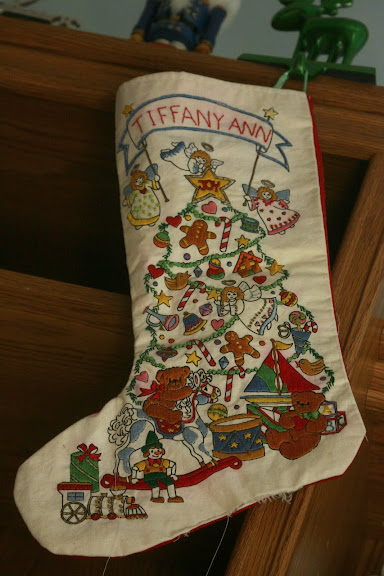 I have had the tree up & lit for weeks now.... but finally seized the opportunity, yesterday (i.e. energy/motivation) to finish decorating it, as well as the rest of our home, for Christmas! Just like last year, I didn't want to make a big fuss - pulling out all the ornaments & decorations - I wanted just a little bit of classy yet, simple [almost primitive] Christmas elegance. For the tree, I used plain, white/clear lights... the wooden stars I made last year... the sign Marmee gave me for Christmas... and my beautiful black, punched tin, star topper. Then I put just a few of our most treasured ornaments across the garland leading from the living room to the music room - which was already strung with white/clear twinkling lights. I hung our stockings on the wall unit... my Grandma's santa figurine on the side table... my beloved Willow tree Nativity on another table (in the music room).... and lit my wonderful "Mistletoe" candle - filling the air with fresh, piney goodness!