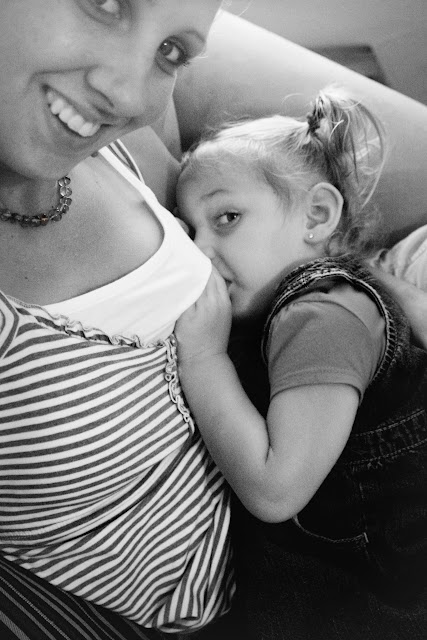 If you would have asked me prior to getting preggo, how long I planned to breastfeed my babies... I probably would have quoted you a time frame of a year-and-a-half to two years. Even though I grew up around breastfeeding - even extended, as one of my sisters bf'd until she was four - compared to our society's 6mos to a year average.... my 1½-2year estimate seemed reasonable, and generous. But I am so grateful for and LaLeche Legue, and a group of educated mommy friends that enlightened me to the real norms of breastfeeding... it doesn't have to stop at one year!